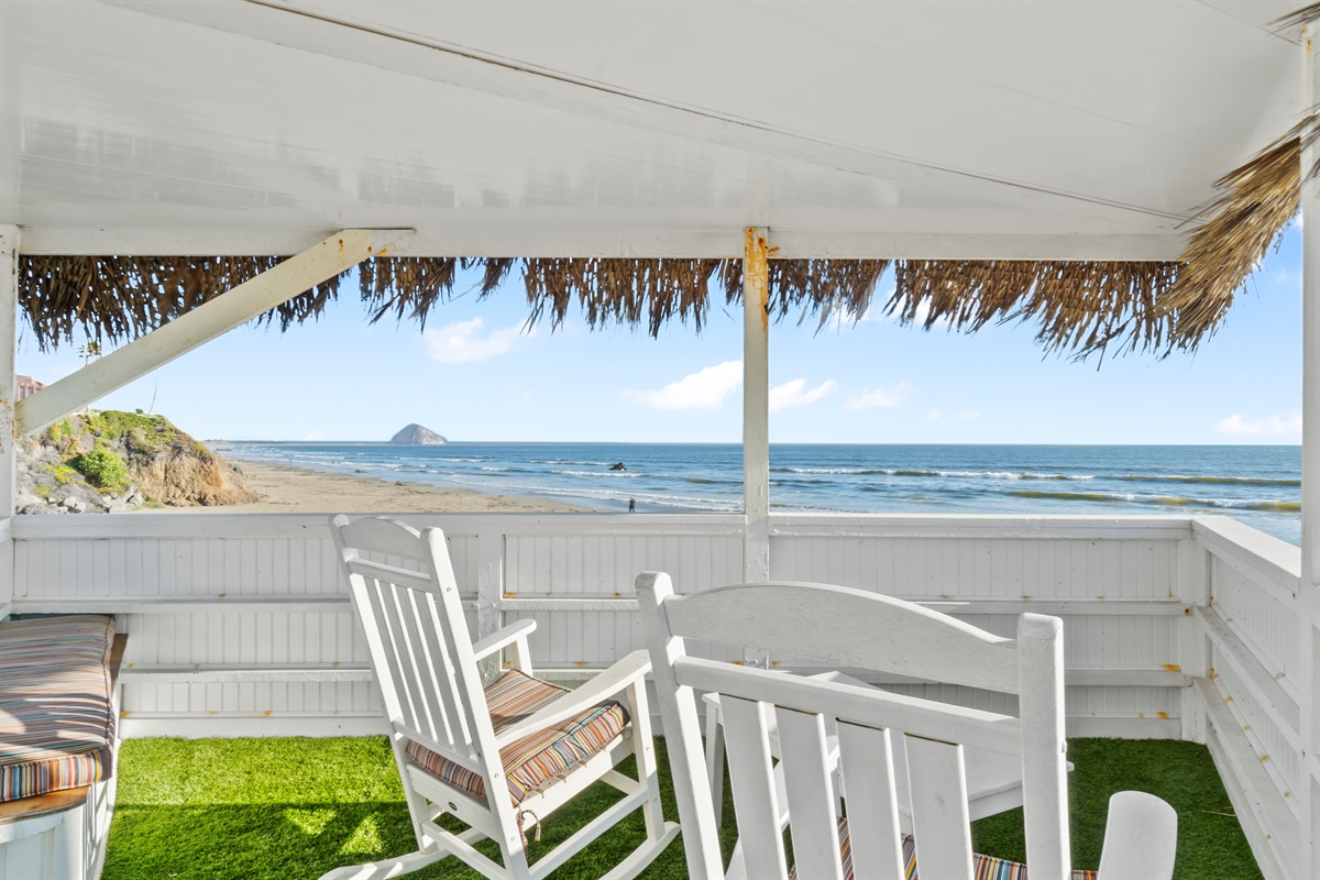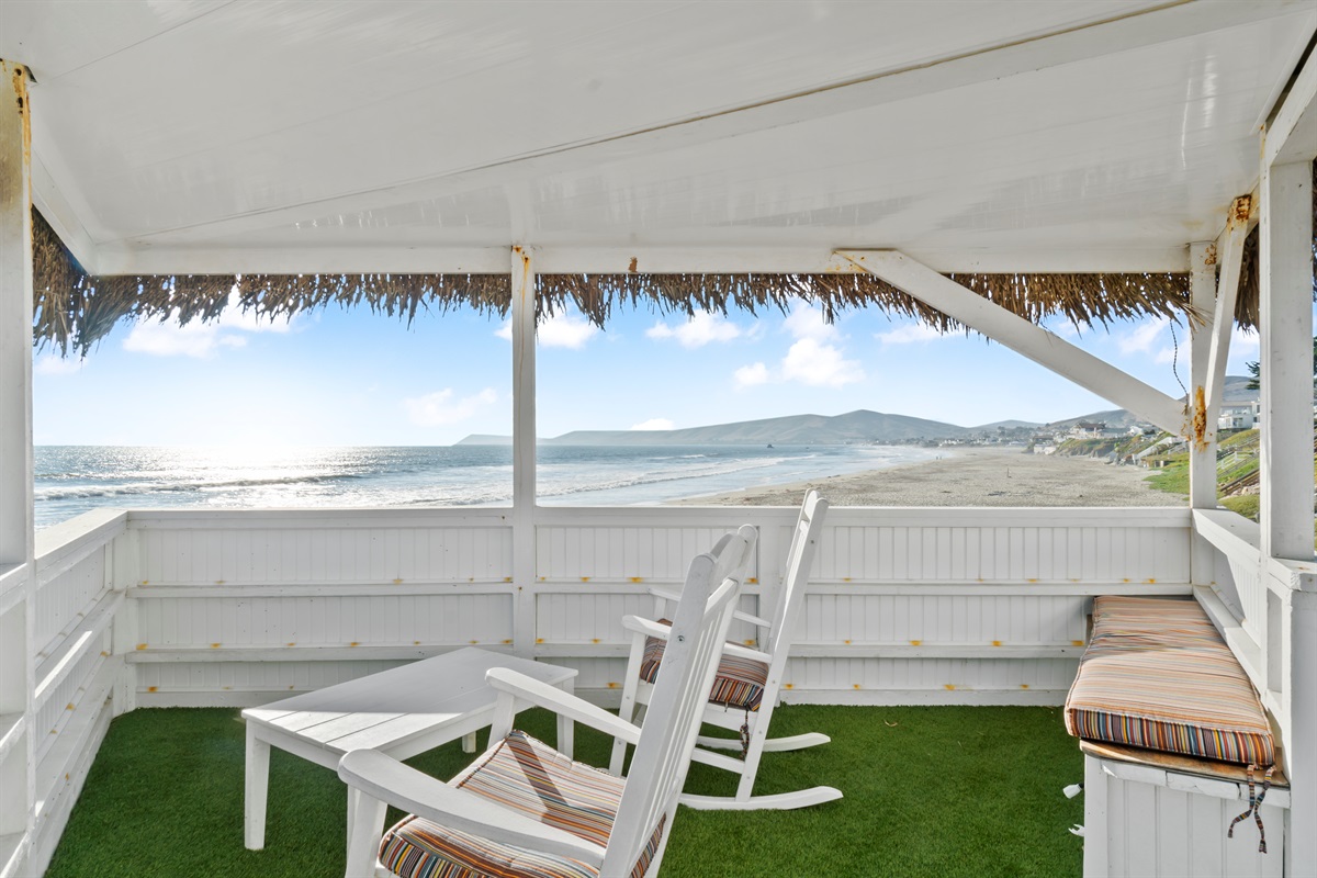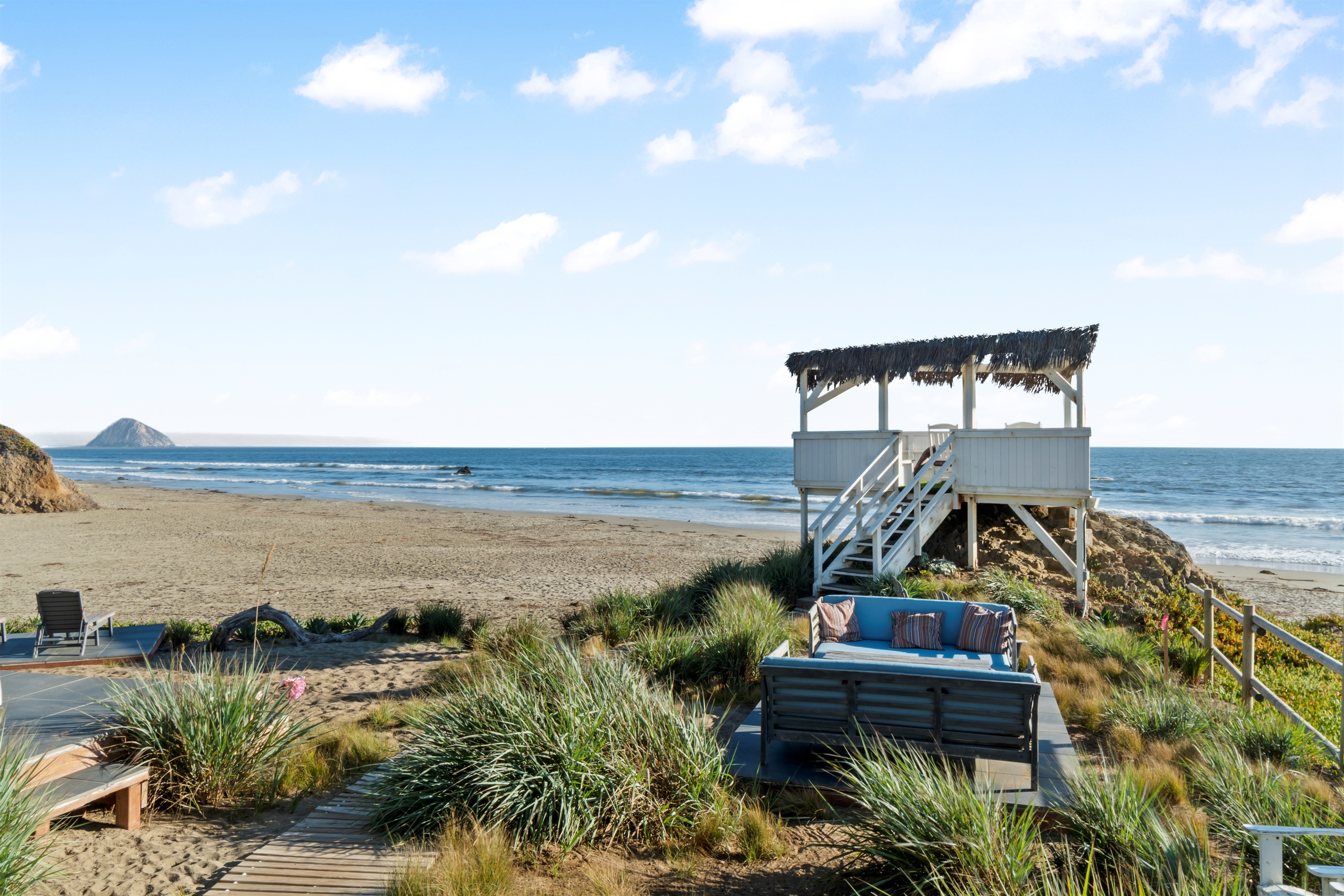 Outdoors, multiple lounge areas invite you to relax to the sound of the waves. A one-of-a-kind beach cabana perches above the shoreline, providing the perfect vantage point for sunsets over the coastline. The home also features a 1-car garage with a 30-amp EV charging plug (Bring your own charging cable) and two additional parking spaces in front.