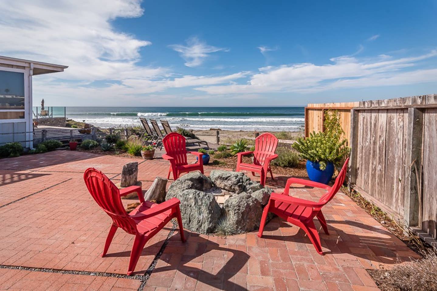 3 Bedrooms • 2 Bathrooms 2 Baths • Sleeps 8-10Welcome to La Chiripa, a charming oceanfront retreat located in south Cayucos. This open and airy home offers stunning views and the soothing sound of waves from the living room, kitchen, and dining area. Step outside onto the multi-level private patio and unwind in the coastal breeze. La Chiripa is a single-level 3-bedroom, 2-bath home situated on the desirable Studio Drive. Access to the sandy beach is conveniently located on the north side of the property through a private gate. Gather with loved ones around the inviting fire pit and witness the perfect Cayucos sunset as the evening unfolds. The family-friendly living room provides ample seating for everyone, creating a welcoming space to relax and enjoy each other's company. After a refreshing dip, cozy up by the fireplace or take a siesta on the strategically placed ocean view futon, basking in the warmth of the sun. The primary bedroom features a queen-sized bed and a slider that opens to the deck, allowing you to wake up to the coastal panorama. The second and third bedrooms offer a full-sized bed and two twin beds each, providing comfortable accommodations for your entire group. Skylights throughout the home fill each room with abundant natural light, creating a bright and inviting atmosphere.