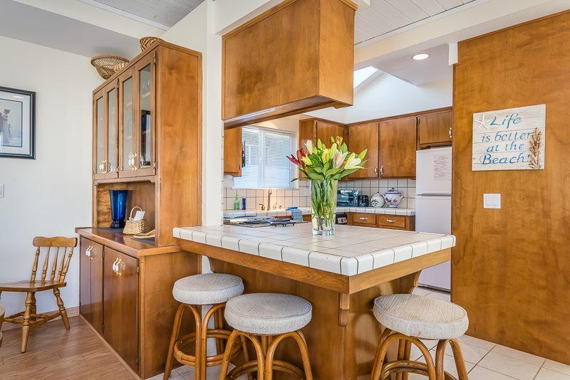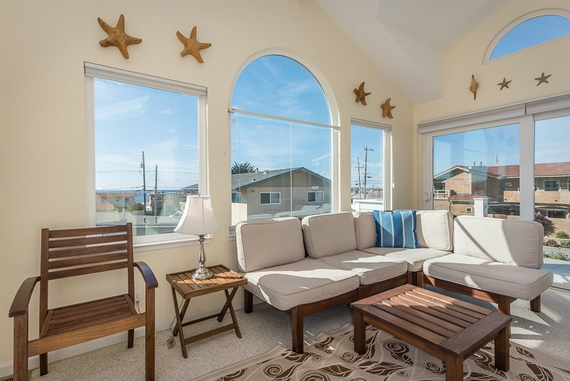 3 Bedrooms • 3 Bathrooms 3 Baths • Sleeps 5-8Sea the Light is a large, spacious home ideal for a family gathering. Ocean views from the large deck and front porch lead you into an open floor plan. Less than 1 block to the beach access at 6th Street and short walking distance to downtown Cayucos. Skylights strategically placed to keep the 2,200 square foot home filled with sunlight. See the Light has a wonderful selection of original artworks, ample seating in living areas, and smart TV's in both the upstairs and downstairs living rooms. The kitchen is fully stocked with cookware and electric appliances. All 3 bedrooms are on the 1st level. The 1st bedroom has a cal king sized bed, bedroom #2 has a standard king sized bed, and bedroom #3 has 2 twin beds. The downstairs living room couch pulls out into a queen sleeper. In the bonus room upstairs there is a wet bar, spacious sitting area, and a very large deck off the bonus room with fabulous ocean views!