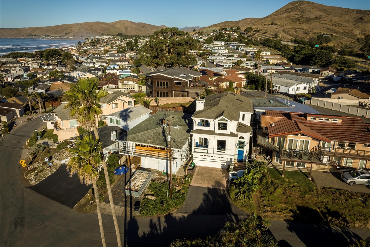 (048) Cass T Away is a newly renovated property that gives you a whole new perspective of the Cayucos coastline. With 4 bedrooms and 3 bathrooms this beautifully furnished home is suitable for a large family exploring Cayucos. Ocean-views on every floor with windows and skylights in every direction making this home bright and inviting. On the first floor is the garage for guest parking and entry way to the upstairs living space. Up the stairs to the second floor is the living room with spectacular ocean views, beautiful furnishings, and an array of amenities for guests to enjoy. This large living space opens up to the kitchen with new appliances as well as a breakfast bar and built-in dining area.