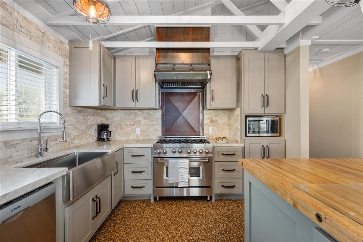 Welcome to the upper level of The Cody House, a stylish beachside retreat offering breathtaking ocean views, just steps from the beach on Cayucos’ scenic Studio Drive. As you ascend the stairs, you're welcomed by stunning panoramic views of the Pacific Ocean. The spacious living room features expansive windows, allowing natural light to flood the space and providing gorgeous ocean views from the kitchen and dining area.