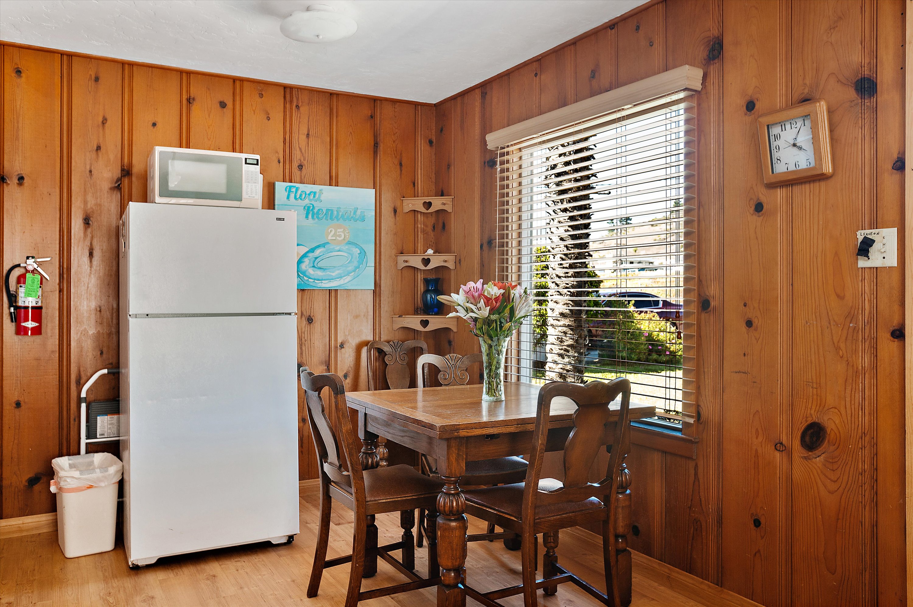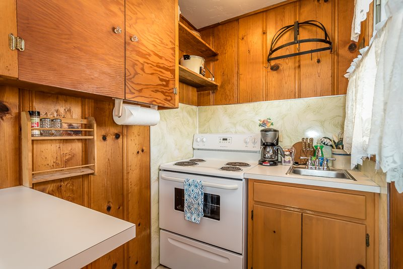 UNIT B: Cozy 1 bedroom, 1 bath duplex that faces Studio Drive. This home features vintage knotty pine throughout, a small kitchen with an electric stove and oven and a full bathroom. The bedroom has a queen size bed with a 13" TV. The living room has a full size futon and a 32" TV. Dining area seats 3. No BBQ or W/D. NO PETS ALLOWED