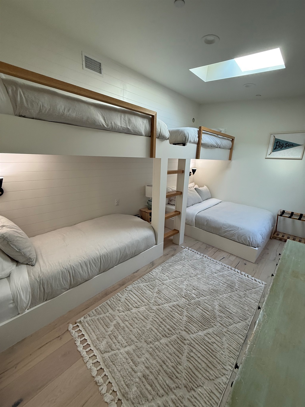 The primary bedroom features a comfortable king-sized bed with small but well-proportioned closet space. The second bedroom features a queen-sized bed, while the third bedroom offers built in bunk beds, offering 3 XL twins and a queen bed, making The Lazy White Cap Ranch a great choice for a family getaway. With the home being a double lot, there is ample parking for up to 4+ cars which is a rarity in Cayucos.